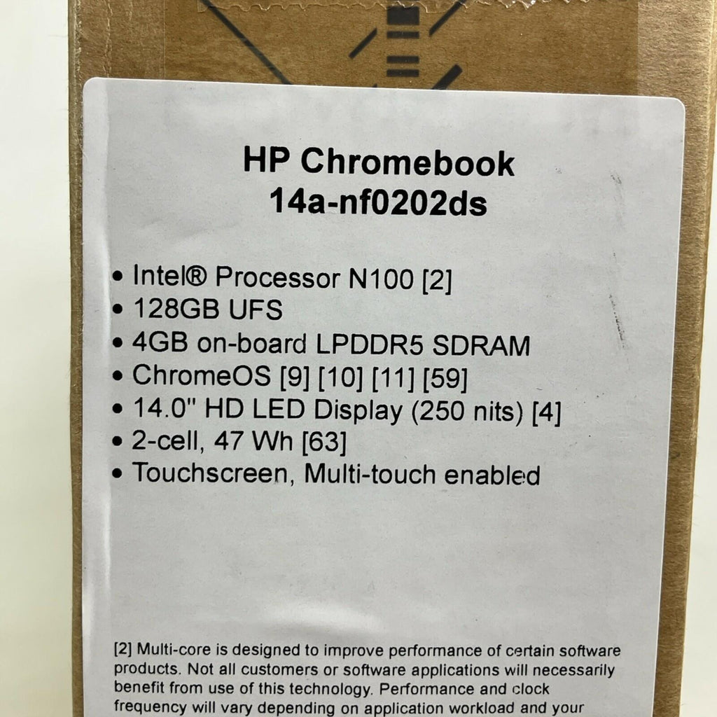 NEW HP 14a-nf0202ds 14" HD LED Chromebook Laptop Intel N100 128GB UFS 4GB