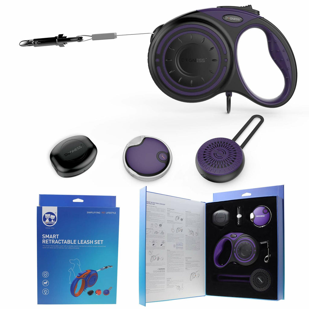 Purple Dogness Smart Retractable Leash Boxed Set