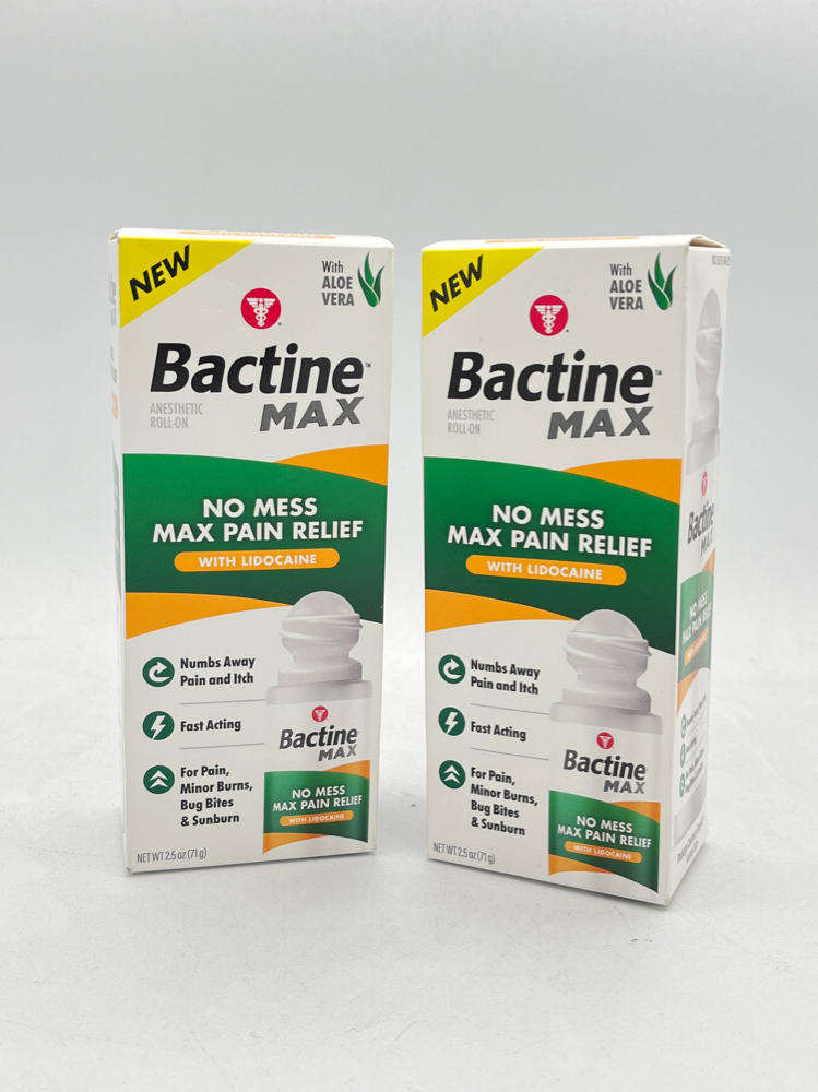 Lot Of Two Bactine MAX No Mess Roll-On for Pain Relief Exp 01/26 - 02/26 2.5 Oz Each.